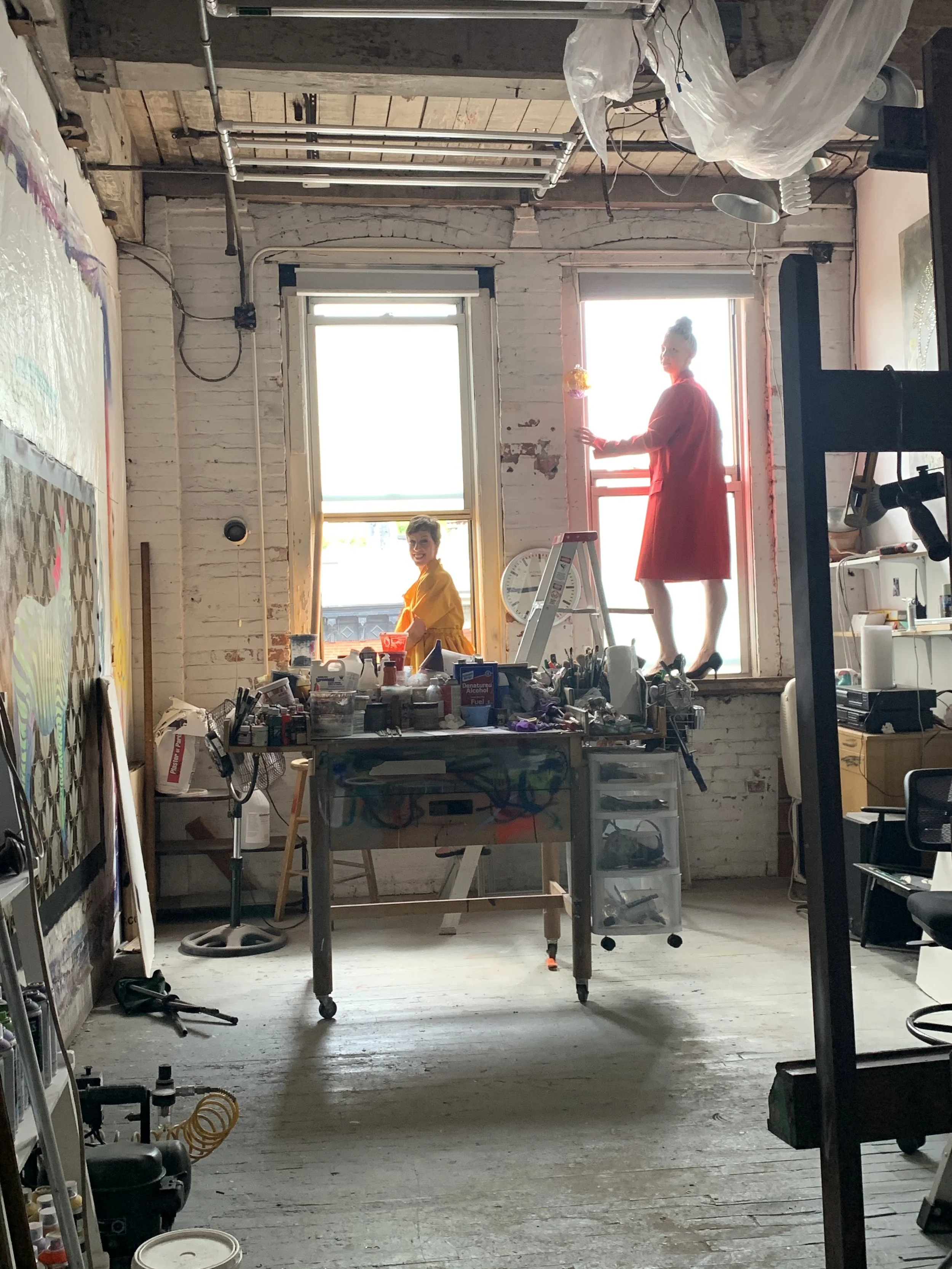 June 2020 - In June of 2020, a wild thing happened. A team from Instyle magazine came to our beloved studio building, the Candy Factory in Clinton Hill, Brooklyn, and took this photo of most of the artists in the windows for a special subscriber-only cover of the September issue. They styled us and staged us, and while the street was blocked off, the photographer took this shot while standing on a scissor lift.